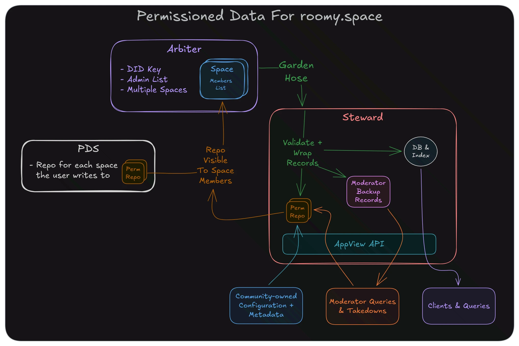 This had more than the arbiter in it, because we were trying to plan out how Roomy would work with the permissioned data proposal. After iterating over the diagram it was easier to tell what data the arbiter was going to need.